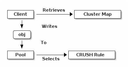 Ceph Clients retrieve a Cluster Map from a Ceph Monitor, and write RADOS objects to pools. The way that Ceph places the data in the pools is determined by the pool’s size or number of replicas, the CRUSH rule, and the number of placement groups in the pool.