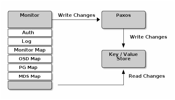 The Ceph Monitor’s primary function is to maintain a master copy of the cluster map. Monitors also provide authentication and logging services. All changes in the monitor services are written by the Ceph Monitor to a single Paxos instance, and Paxos writes the changes to a key/value store. This provides strong consistency. Ceph Monitors are able to query the most recent version of the cluster map during sync operations, and they use the key/value store’s snapshots and iterators (using RocksDB) to perform store-wide synchronization.